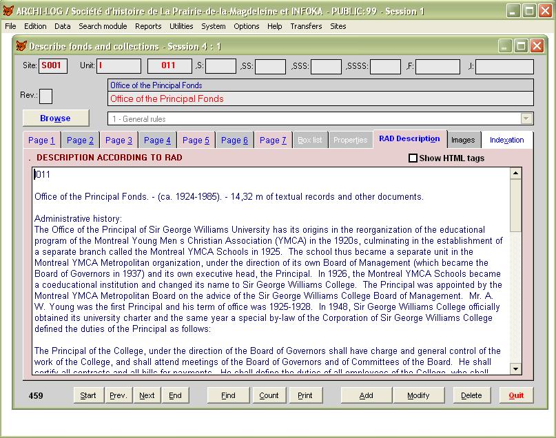 the (RAD) description and management of your archives, using 7 levels of description